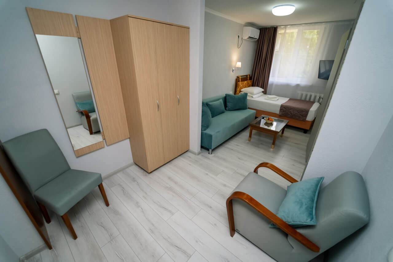 Гостям предоставляются современные номера, которые по уровню комфорта не уступают лучшим отелям полуострова. Все комнаты оборудованы кондиционерами, беспроводным интернетом и кабельным телевидением. Трехразовое питание включено в стоимость путевки и предлагается в уютной столовой, находящейся недалеко от корпусов.