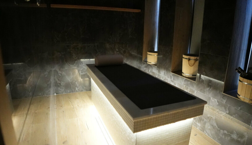 Специализированная комната для грязелечения, где гости наносят лечебную грязь на тело, а затем сушат его при высокой температуре.